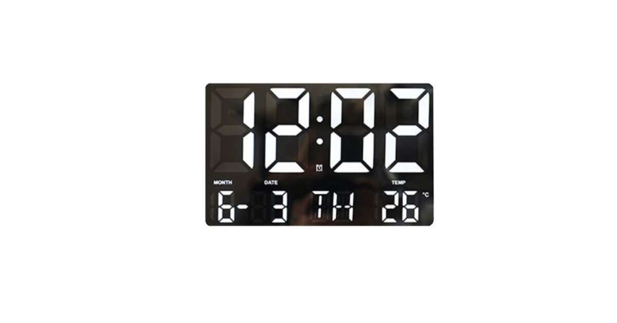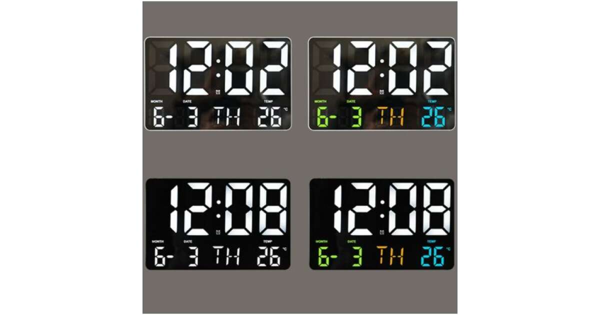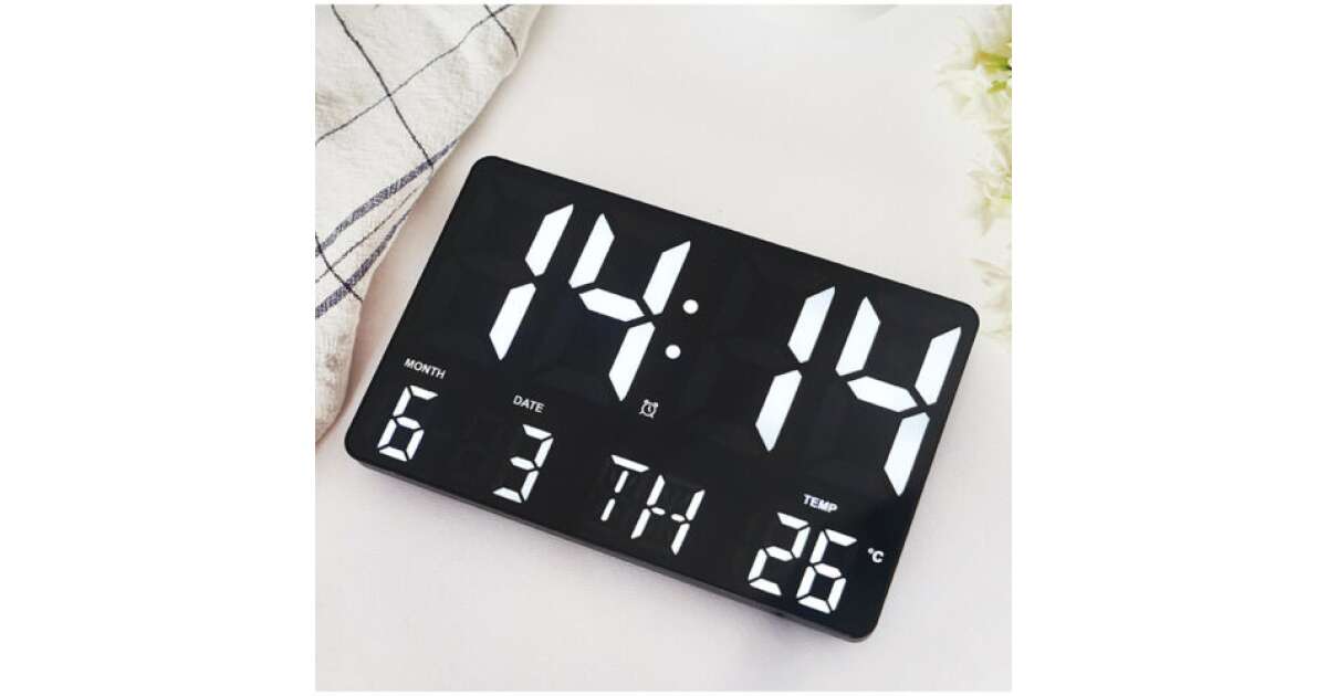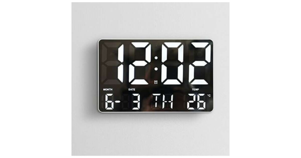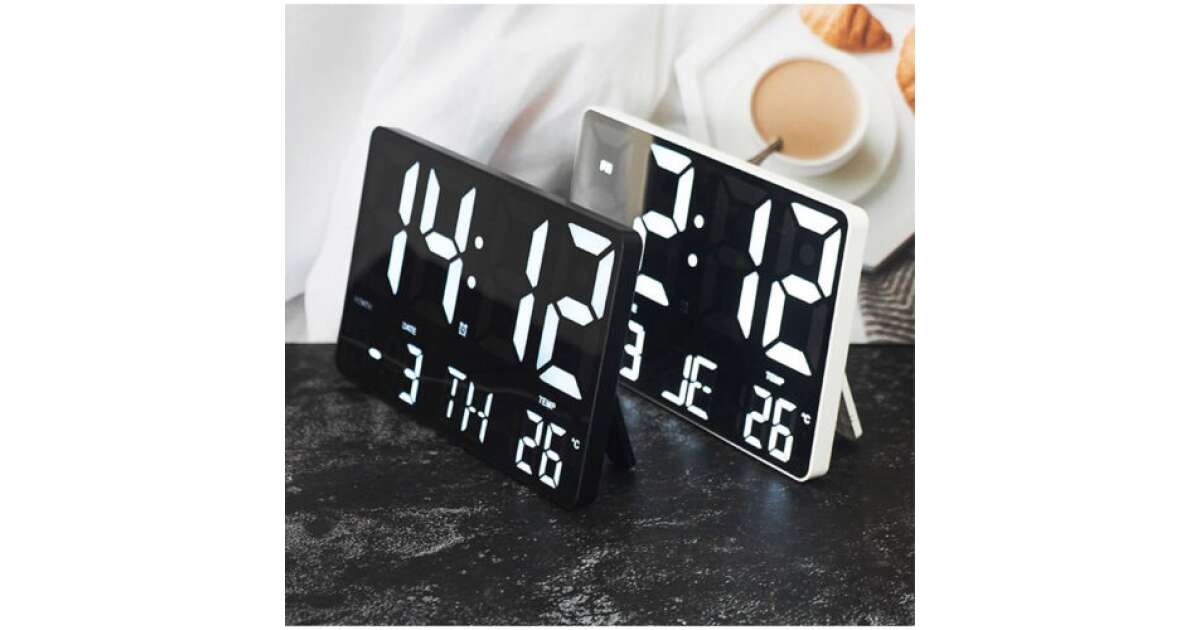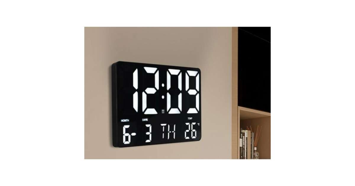 Acest ceas digital modern este perfect pentru living, dormitor sau birou. Are un afișaj LED mare și ușor de citit, care afișează ora, data, ziua săptămânii și temperatura. Poate fi agățat pe perete sau așezat pe birou.