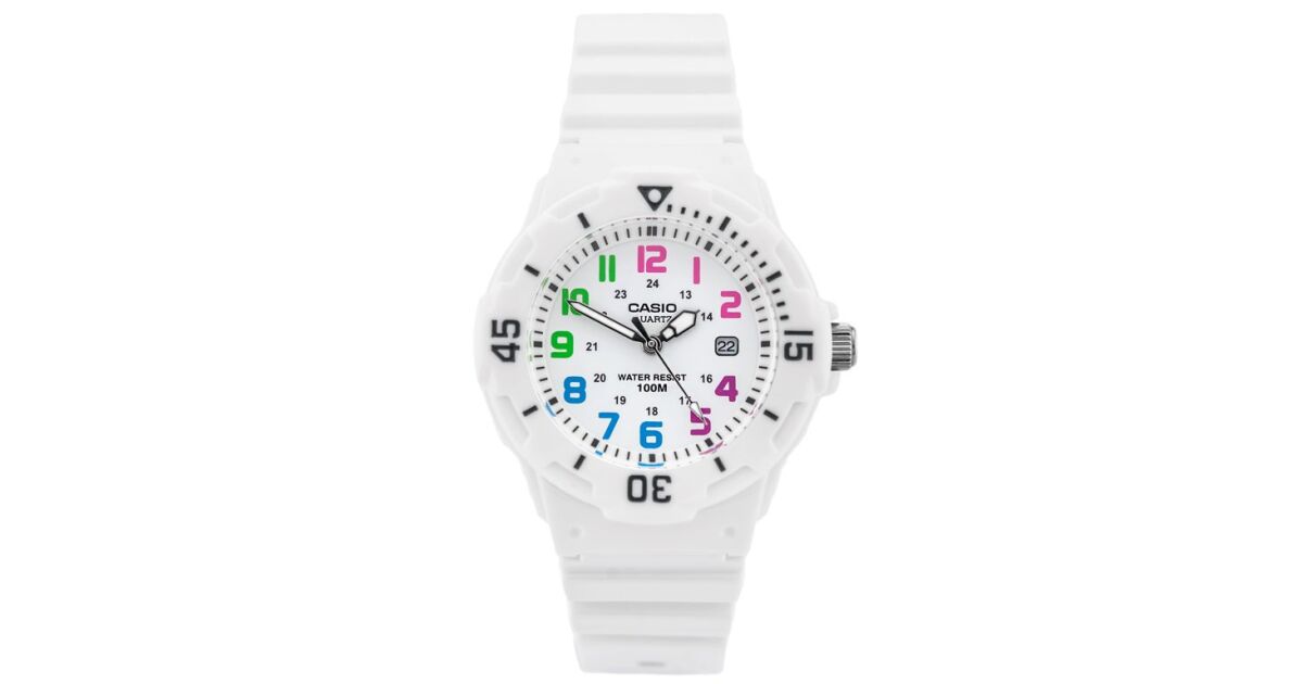 Ceas de damă Casio quartz alb WR100M dată Descriere