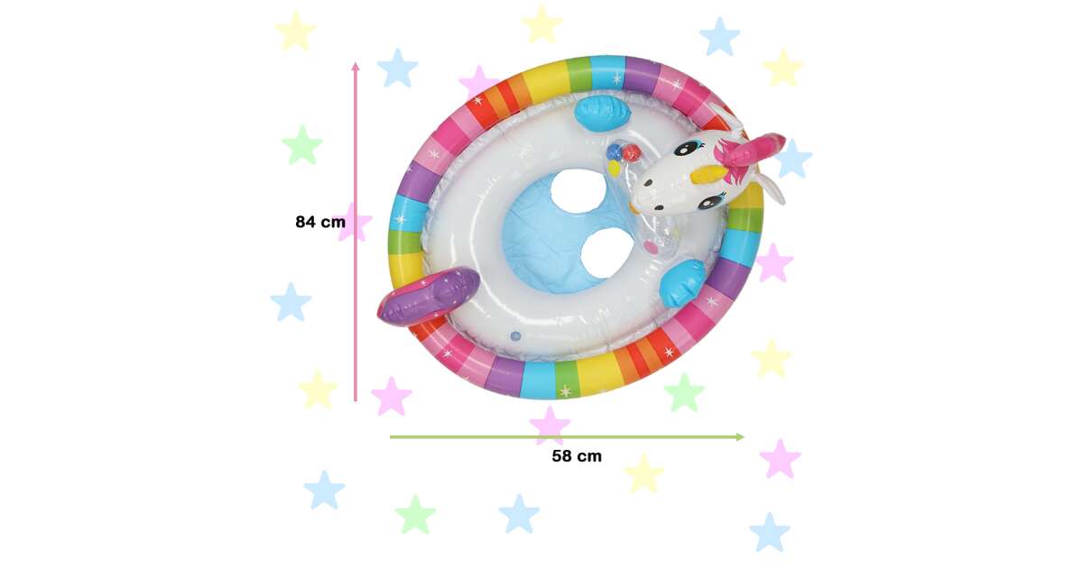 Acest colac de înot colorat, în formă de unicorn, este alegerea perfectă pentru copiii de 3-4 ani pentru o scăldătoare sigură în piscină sau în apă. Culorile vesele și designul adorabil îi vor cuceri cu siguranță pe cei mici și îi vor încuraja să se joace în apă.