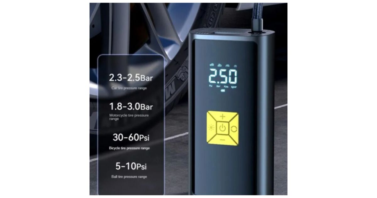 Acest compresor portabil, cu acumulator este soluția ideală pentru a verifica și ajusta presiunea pneurilor oriunde și oricând. Afișajul digital oferă informații precise, iar acumulatorul încorporat îți oferă libertate de utilizare. Fie că e vorba de mașină, motocicletă, bicicletă sau minge, acest compresor îți va fi de ajutor!