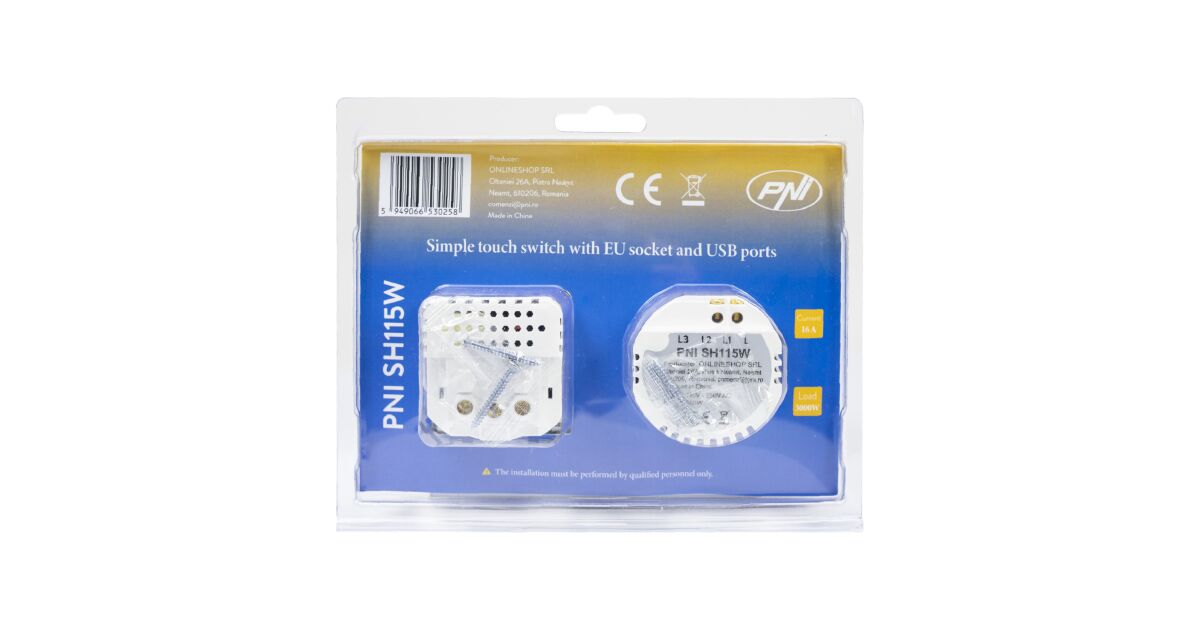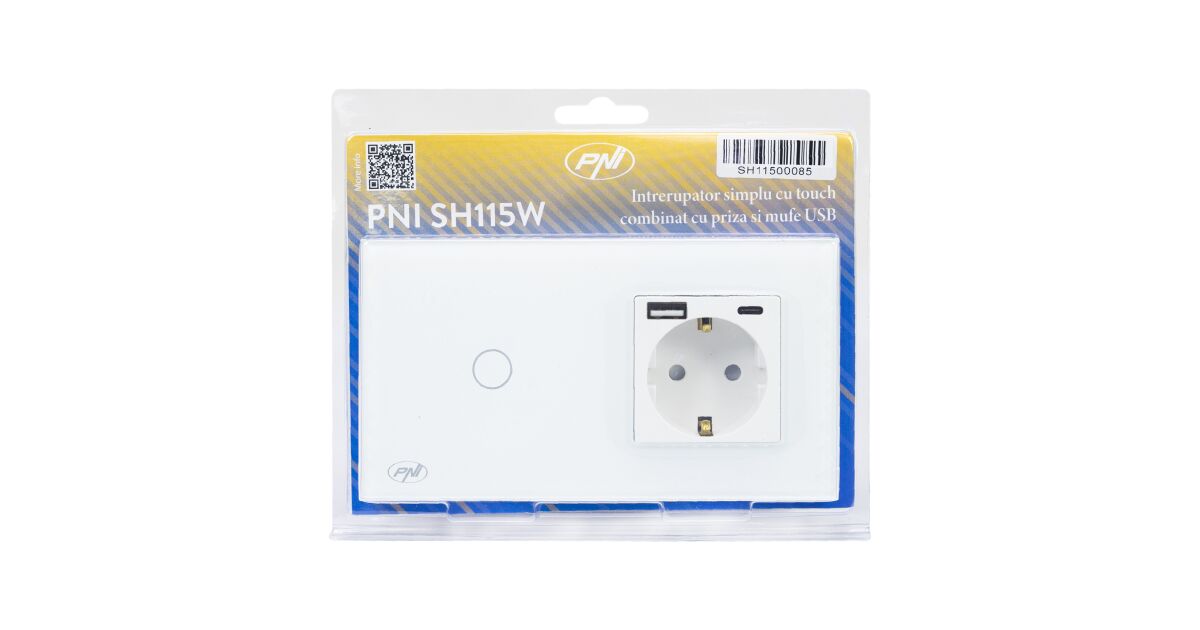 PNI SH115W este un întrerupător de perete elegant și practic, care combină controlul tactil, priza Schuko și posibilitățile de încărcare USB. Este alegerea perfectă pentru a-ți moderniza casa sau biroul.