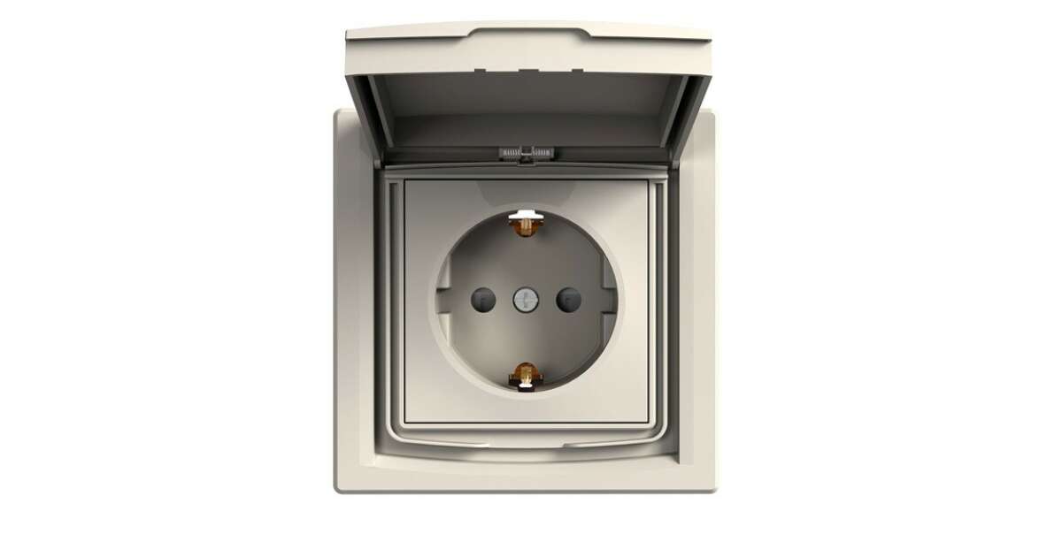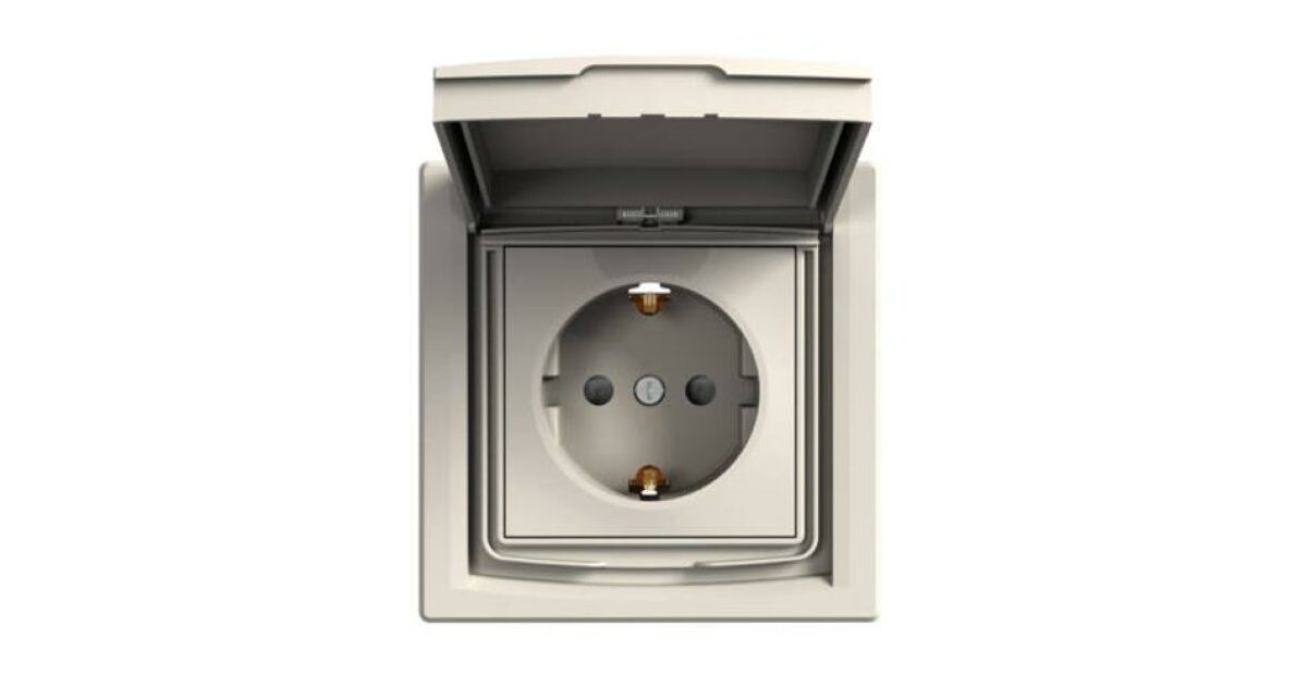 Priză Schneider Asfora 2P+F - Cu protecție IP44, Culoare Bej