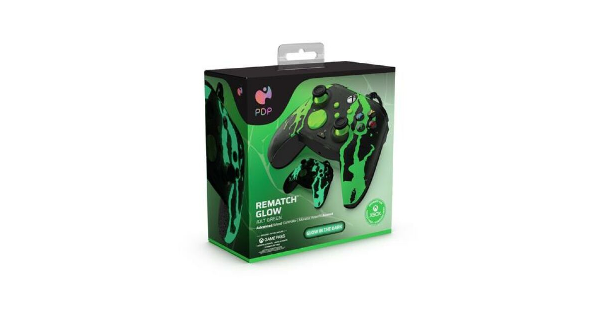 Controller cu fir, PDP Rematch, Xbox Series X|S, Xbox One, PC, Jolt Green Glow in the Dark Descriere