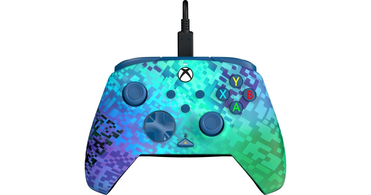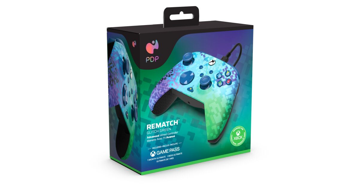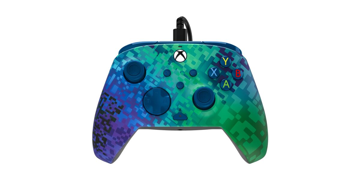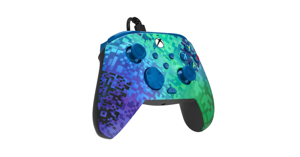 Controller cu fir PDP Xbox Series X|S, Xbox One, PC Rematch 3,5 mm audio Glitch Green Descriere