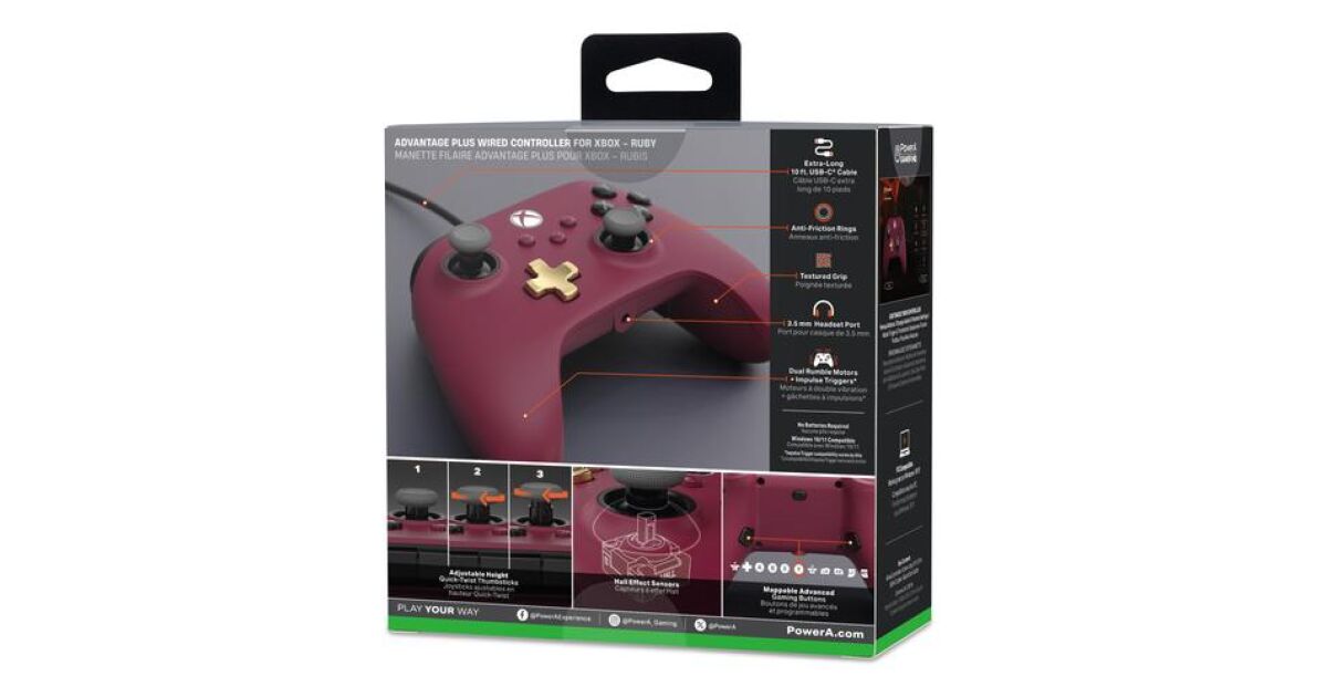 PowerA Advantage+, Xbox Series X|S, Xbox One, PC, Twist Thumbstick, efect Hall, Ruby, controler cu fir Descriere