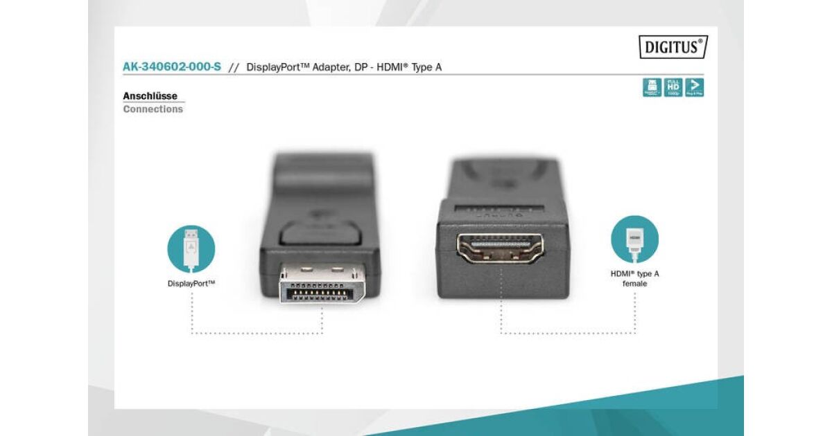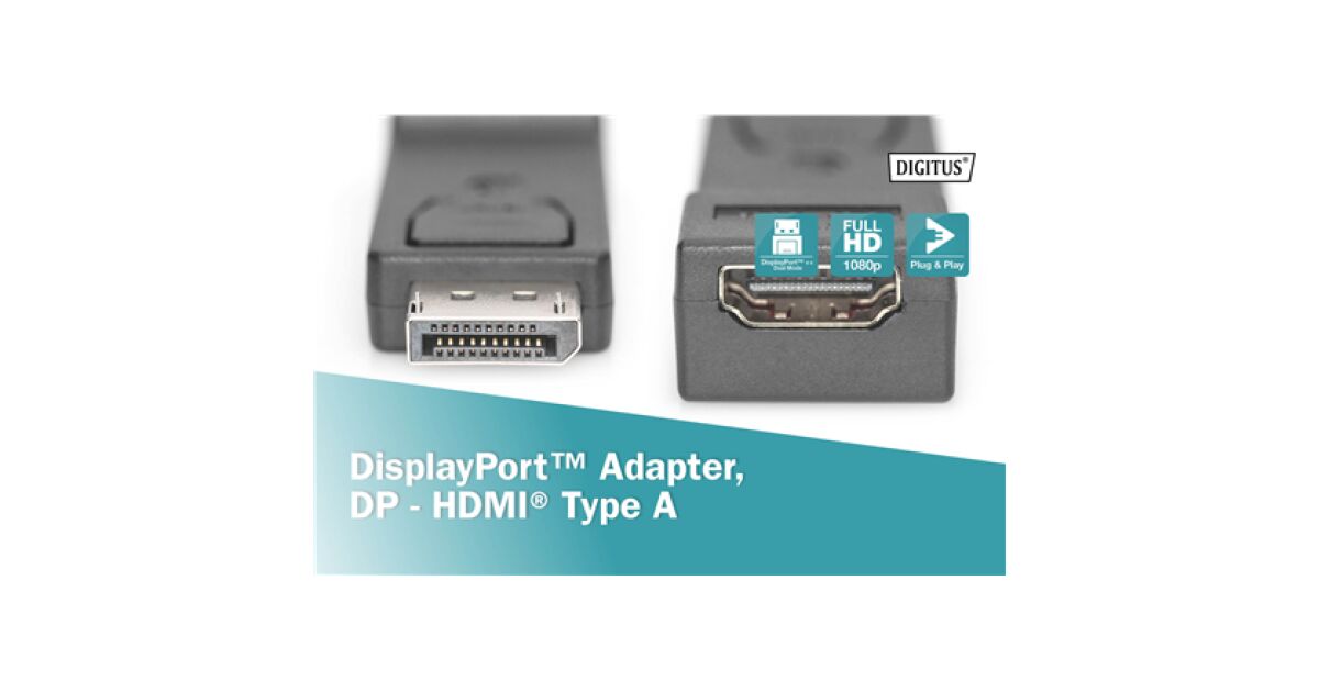 Adaptor, Assmann, DisplayPort, DP - HDMI tip A (AK-340602-000-S) (AK-340602-000-S) Descriere
