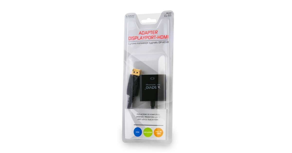 Un adaptor DisplayPort - HDMI Elmak SAVIO CL-55 de calitate superioară, care garantează o transmisie a imaginii fără probleme.