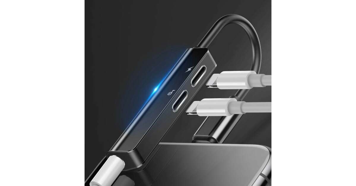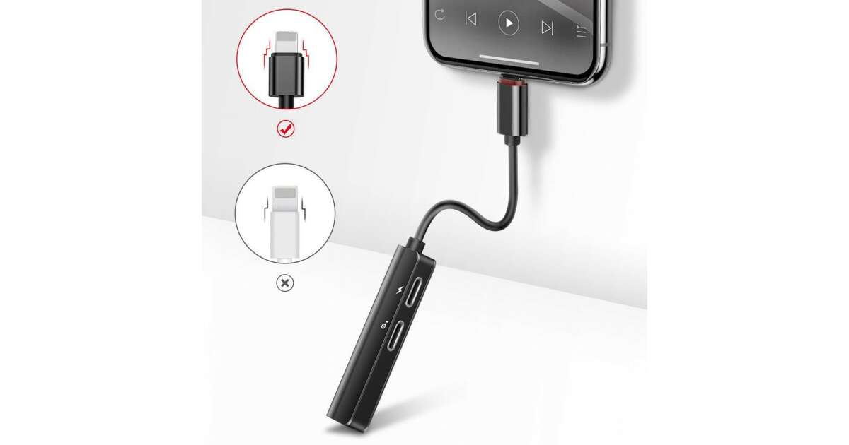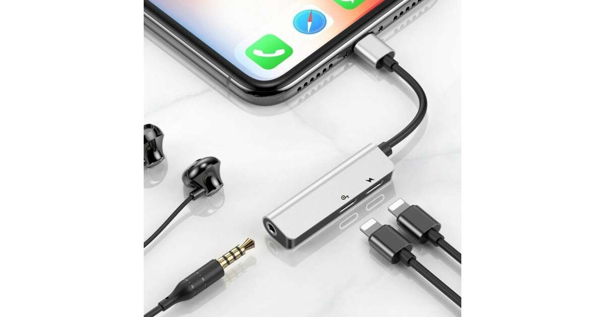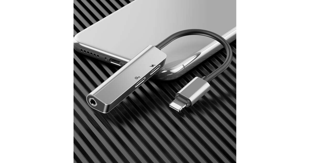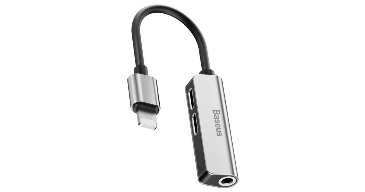 Acest adaptor Baseus 3 în 1 îți permite să-ți încarci dispozitivul, să asculți muzică și să răspunzi la apeluri simultan. Are două porturi Lightning și o mufă jack de 3,5 mm, astfel încât poți folosi orice căști.