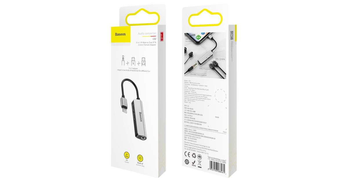 -Adaptor Audio Baseus tip Lightning - 2 x tip Lightning / 3.5 mm L52, CALL52-S1, Gri (CALL52-S1) Descriere