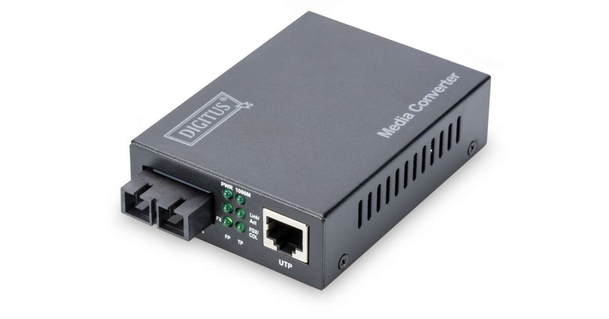 Convertor DIGITUS Gigabit Ethernet 10/100/1000Base-TX zu 1000Base-LX transformă firul pe bază de fibră optică până la 10Km singlemode