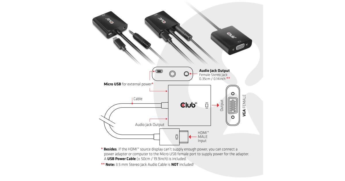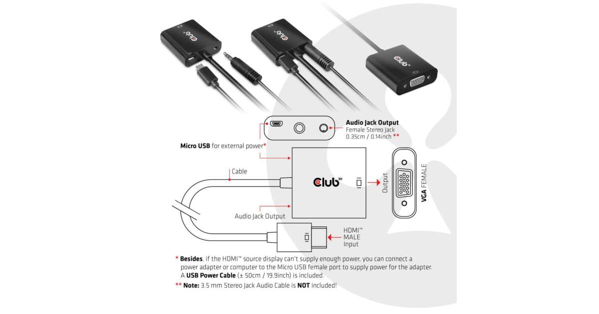 - 1 x Adaptor HDMI-VGA Club 3D CAC-1302