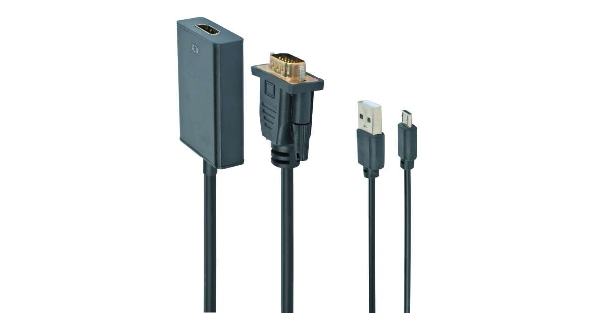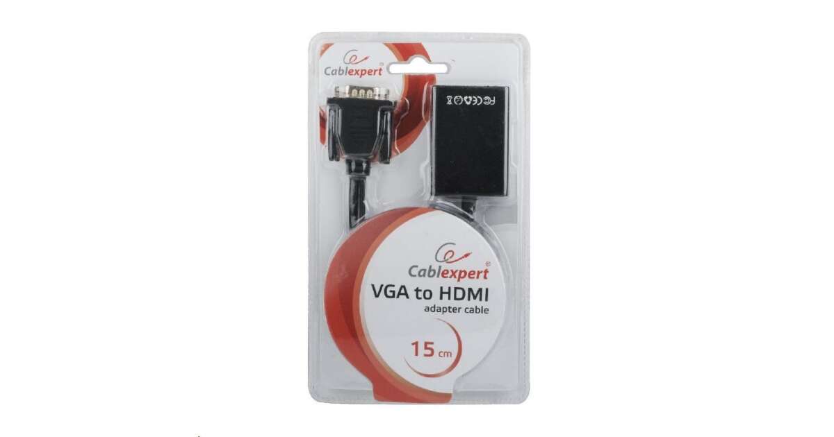 Cablu video Gembird adaptor VGA (T) + jack 3.5mm (T) la HDMI (M), 15cm, rezolutie maxima Full HD la 60Hz, Negru, A-VGA-HDMI-01 (A-VGA-HDMI-01) (A-VGA-HDMI-01) Descriere