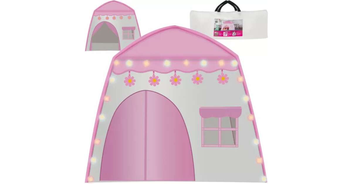 Un loc sigur și distractiv pentru fetița ta, unde își poate lăsa imaginația să zboare. Datorită luminițelor integrate, se poate juca și seara. Se montează și se demontează ușor, astfel încât este ușor de depozitat și transportat.