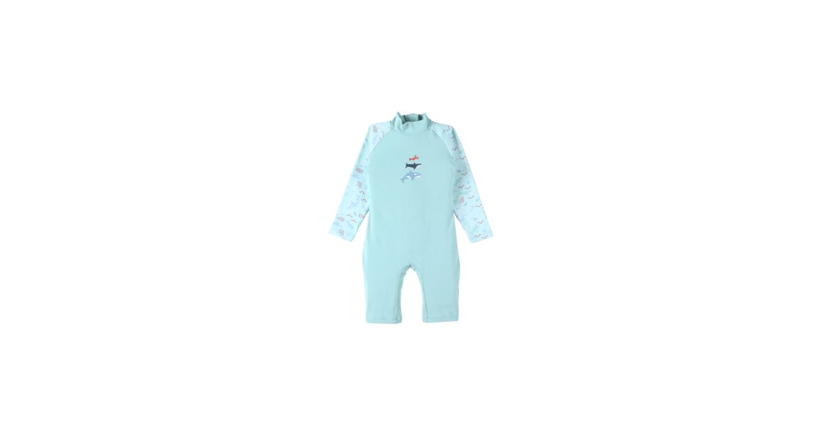 Acest costum de baie superb, de un albastru acvatic, este alegerea perfectă pentru aventurile de vară! Cu protecție UV SPF50+, are grijă de pielea sensibilă a copilului tău, protejând-o de razele UVA și UVB. Iar modelele marine vesele garantează un aspect stilat.