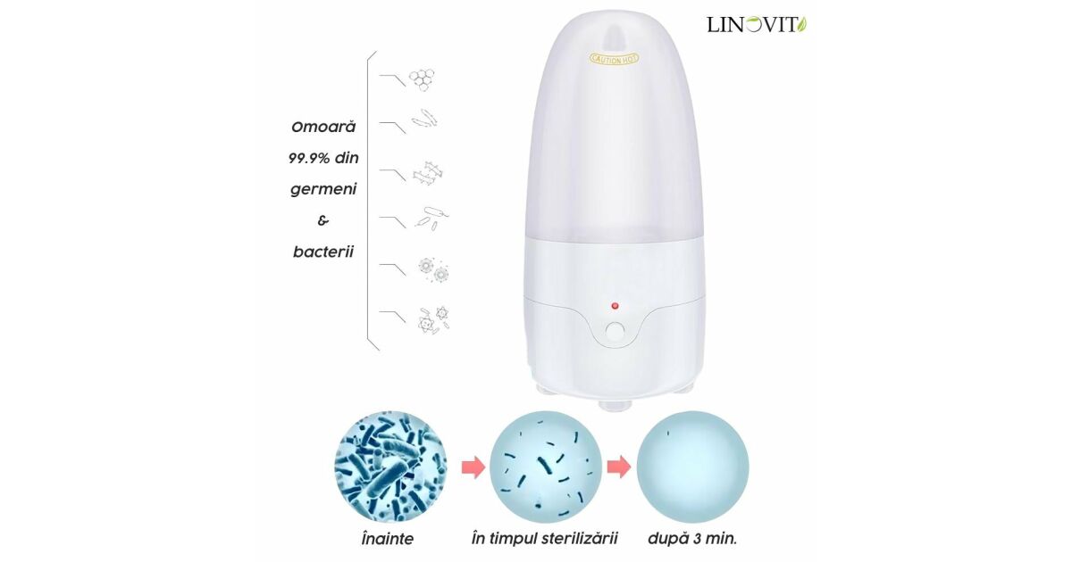 - 💨 Sterilizare cu abur: Distruge bacteriile și agenții patogeni în doar câteva minute, fără chimicale.