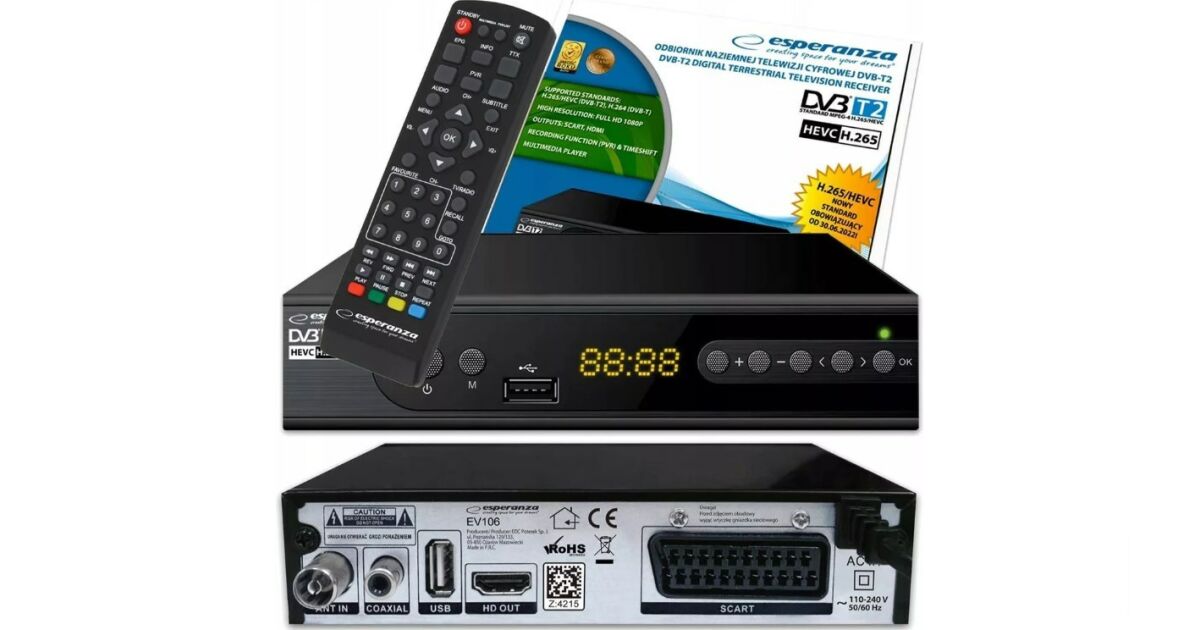 Receptorul Digital Terestru Esperanza EV106R DVB-T2: Bucură-te de o imagine clară ca cristalul! 📺