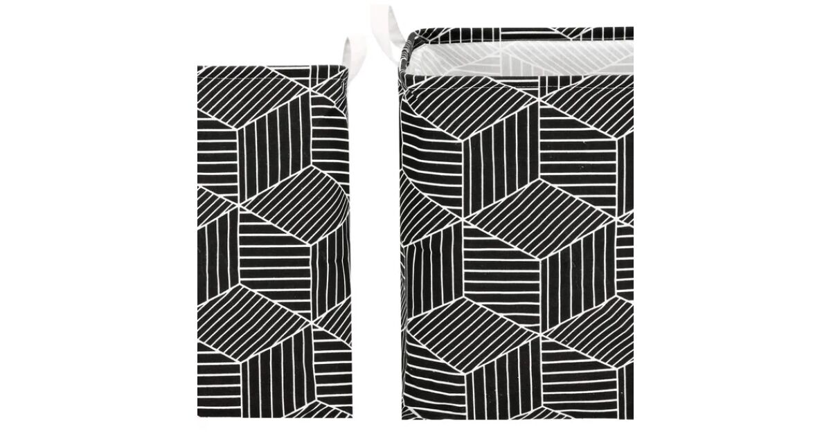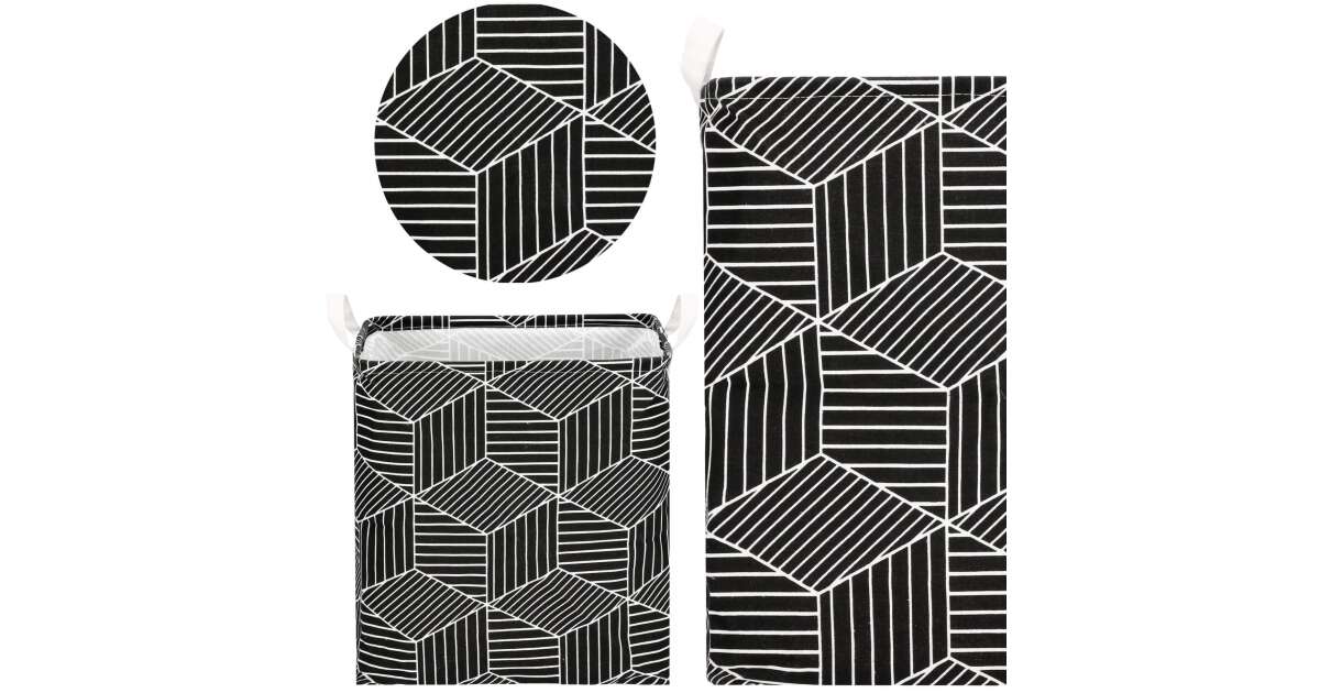 Coș de depozitare Springos - 35 litri, model geometric alb-negru