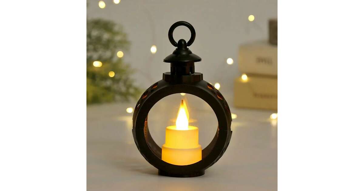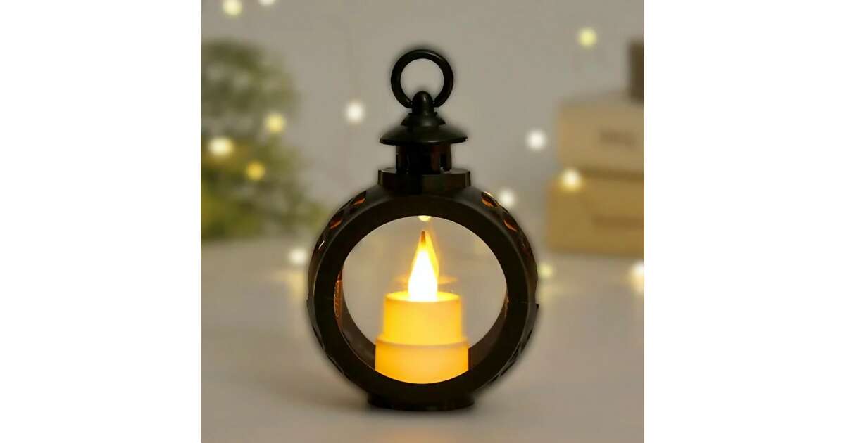 Decoratiune Craciun tip Felinare cu baterii, 13.5 x 9 cm,Lumanare cu lumina alb cald fara geam,baterii incluse,Negru Descriere