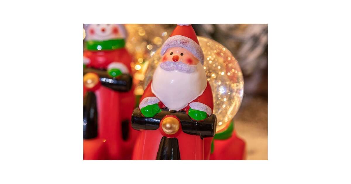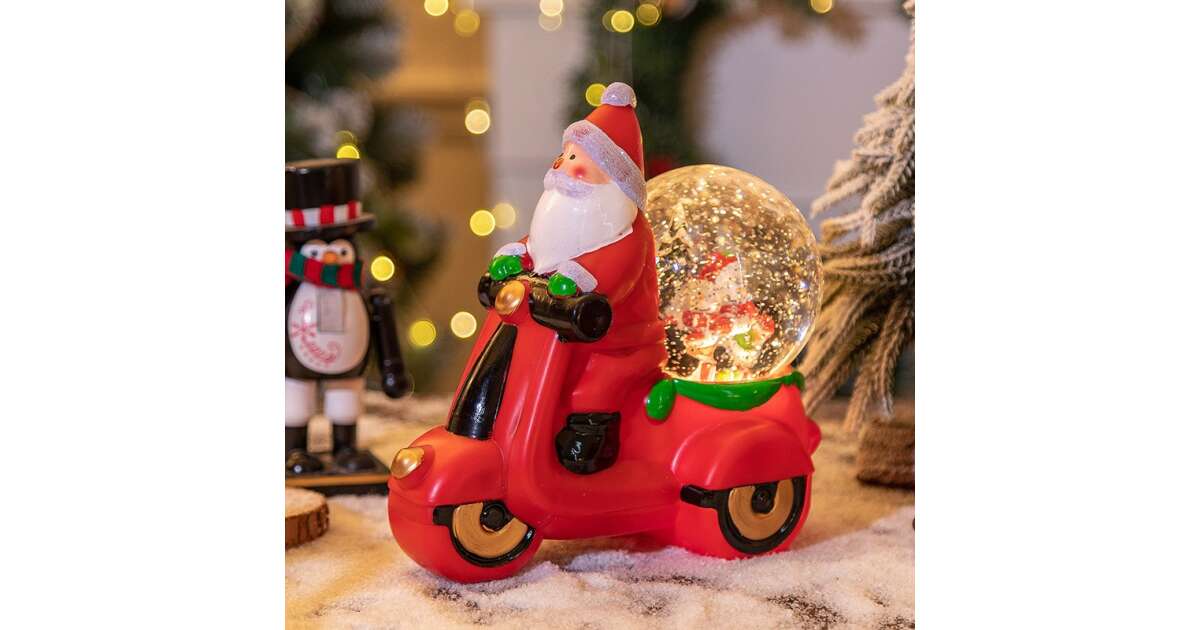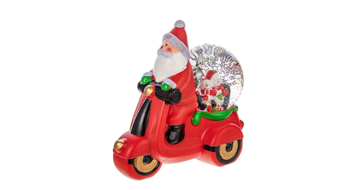 Această decorațiune de Crăciun unică aduce magia sărbătorilor în casa ta! Moș Crăciun la volanul unei motociclete roșii, cu un glob de zăpadă muzical, creează o atmosferă festivă și veselă. Perfectă pentru a completa decorul de Crăciun, această piesă va încânta atât copiii, cât și adulții.