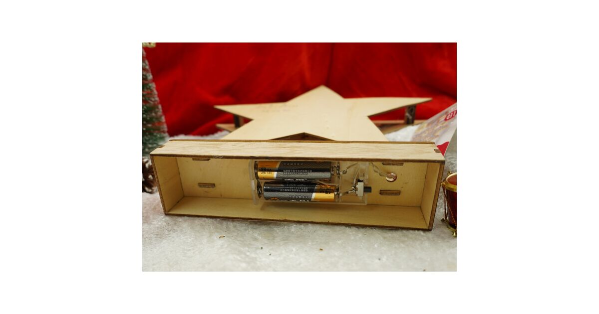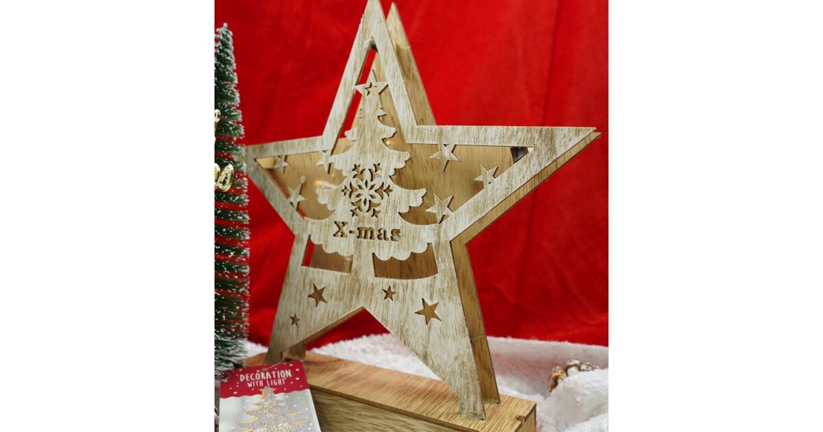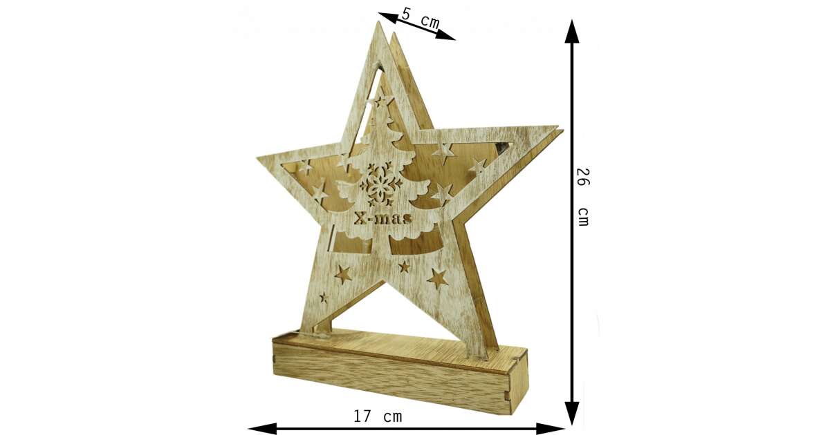 Decoratiune luminoasa, model de Stea cu Brad si inscriptie Marry Christmas, alb, lungime: 19 cm, latime: 5 cm, inaltime: 26 cm, lemn, interior/exterior