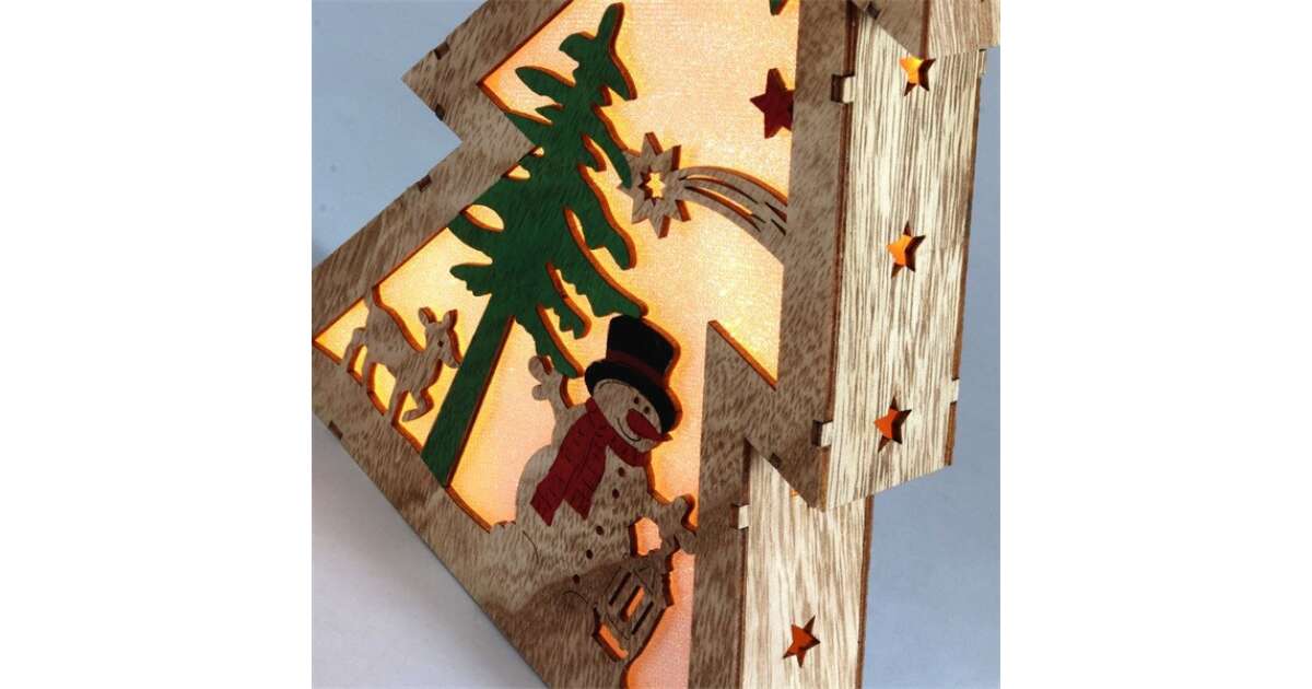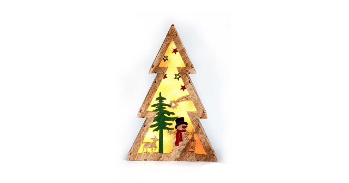 Această decorațiune fermecătoare de Crăciun din lemn, cu dimensiunile de 20x29,5x4,5 cm, este completarea perfectă pentru decorul tău festiv. Luminile LED alb cald creează o atmosferă magică, iar modelul cu omul de zăpadă radiază o atmosferă veselă de Crăciun. De asemenea, poate fi un cadou ideal! 🎁