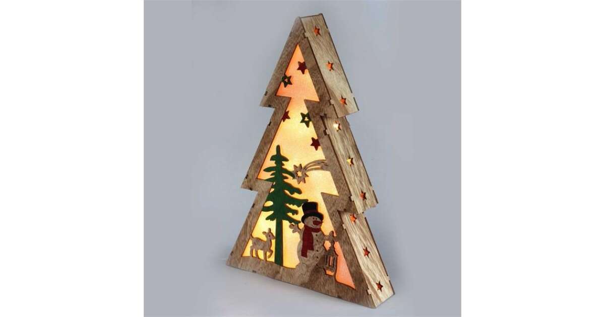 Tannenbaum in Form eines Schneemanns/20x29,5x4,5cm/warmweiße LED-Baumlichtdekoration (310-13)