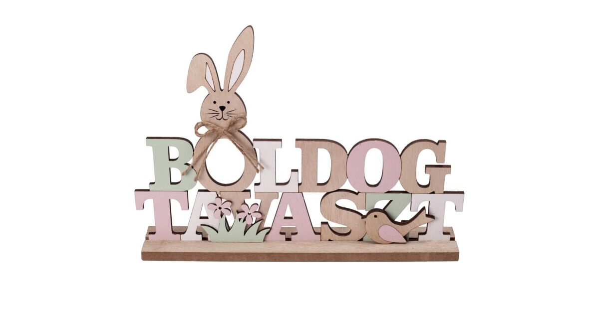 Decor - iepuraș cu unscripția primăvară fericită în limba maghiară - 28 x 18 cm Descriere