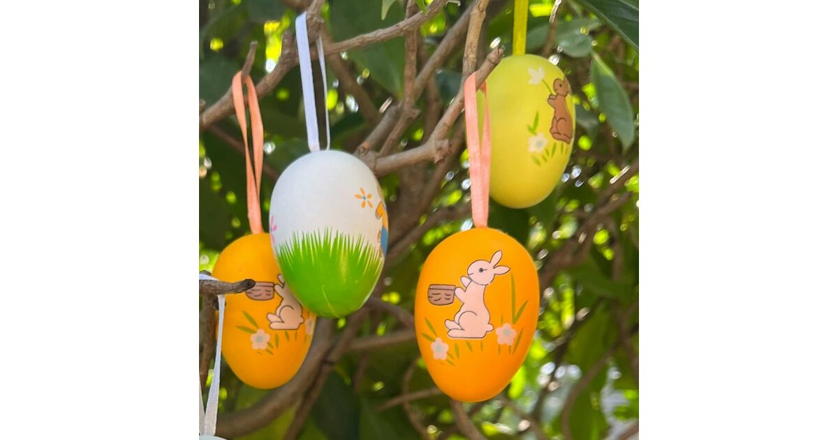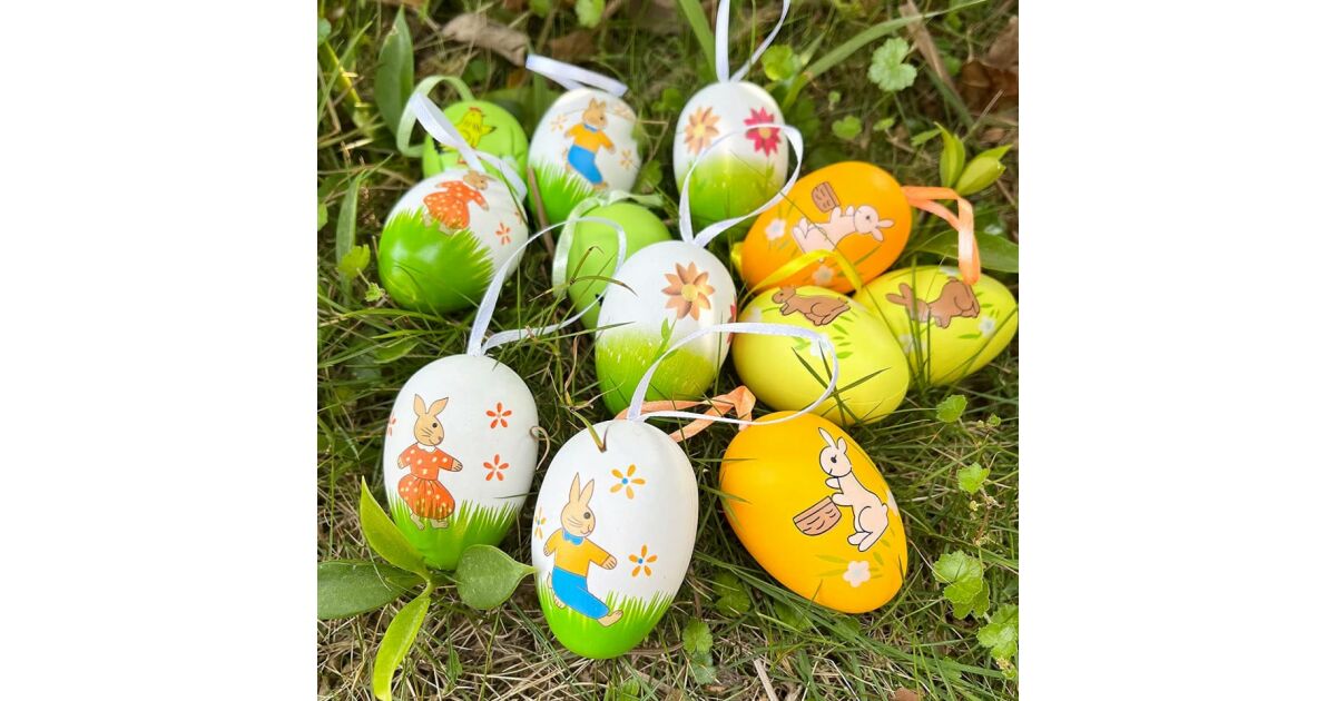 Adauga o nota de primavara casei tale cu acest set de 12 oua decorative de Paste! Fiecare ou este pictat manual cu iepurasi, pui si flori, creand o atmosfera calda si primitoare. Sunt perfecte pentru a decora casa, gradina sau bradul de Paste.