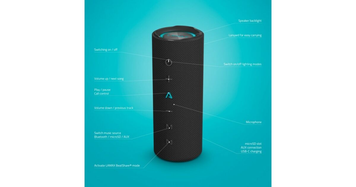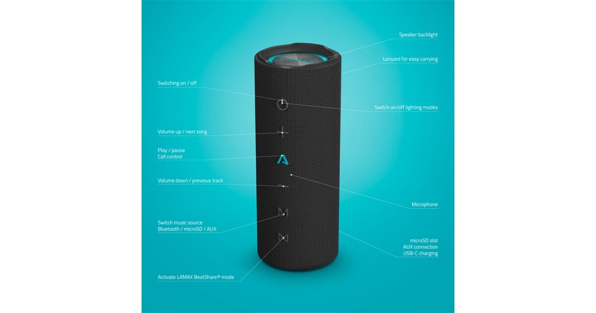 - Tehnologie BeatShare: Conectarea wireless a două boxe LAMAX pentru un sunet și mai puternic. 🔊