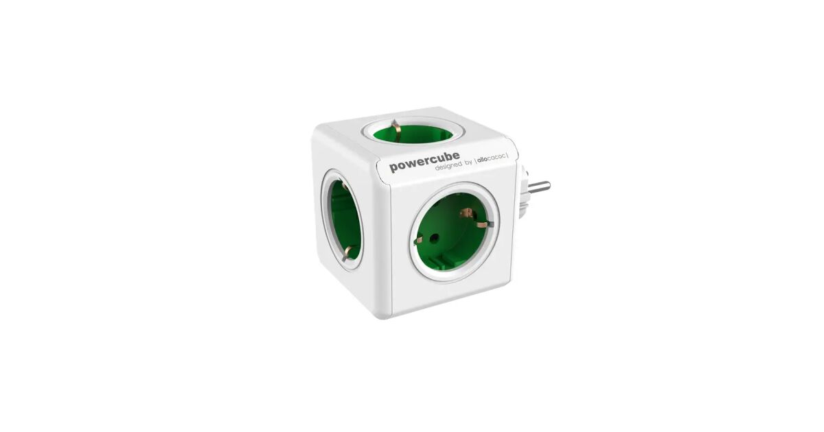 Prelungitor cubic, Powercube by Allocacoc, 5 prize, alb/verde Descriere