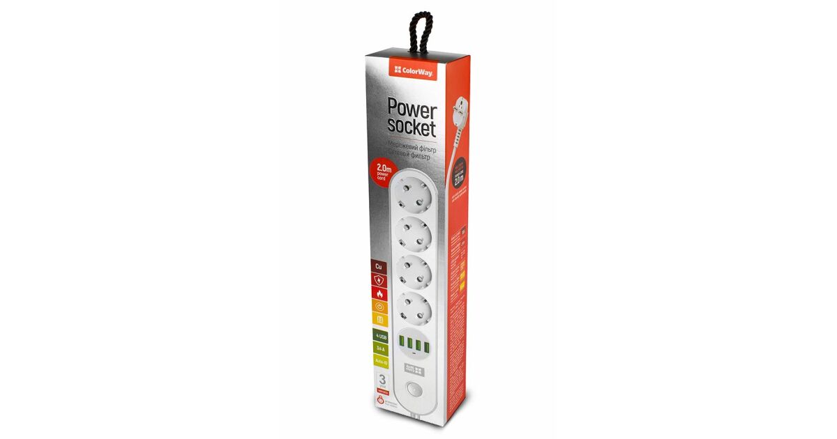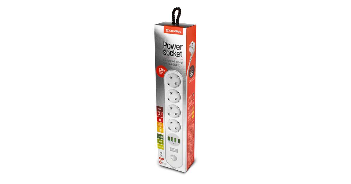 Distribuție de putere Colorway, cw-che44w, 4 prize, 4xusb, 2m, alb CW-CHE44W (CW-CHE44W) Descriere