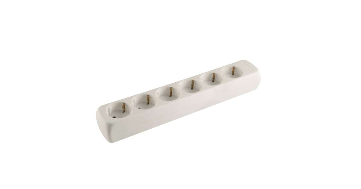 Distribuitor Home NV 06, se poate instala, 6 prize cu protectie pentru copii, poate fi agatat pe perete, max. 3500W, alb Descriere
