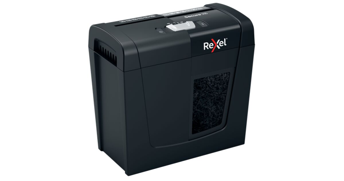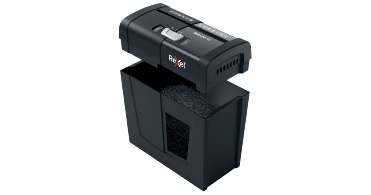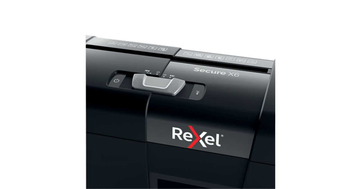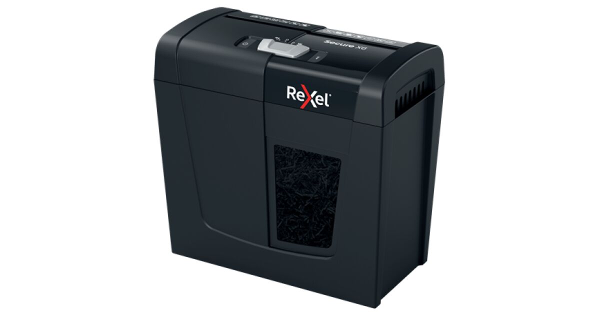 Distrugător de documente Rexel Secure X6 cu tăiere transversală P4, 6 coli, coș de gunoi 10 L Descriere