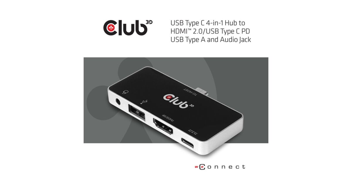 Hub USB Club 3D - CSV-1591 (3.1 USB-C Gen 1 către HDMI, 2.0 USB-A, USB-C 100W, 3.5 Jack, 4k60Hz) Descriere