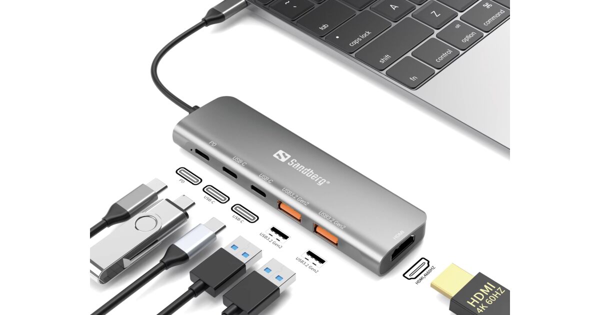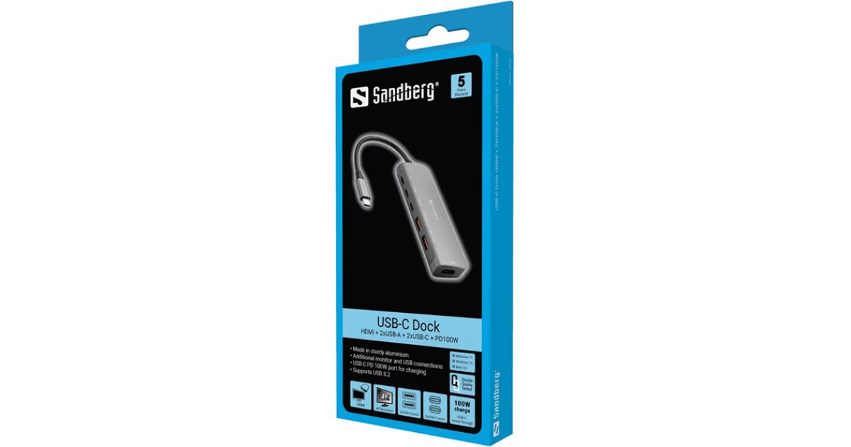 Sandberg USB-C Dock HDMI + 2xUSB-A + 2xUSB-C + PD100W Wired USB 3.2 Gen 1 (3.1 Gen 1) Type-C aluminiu