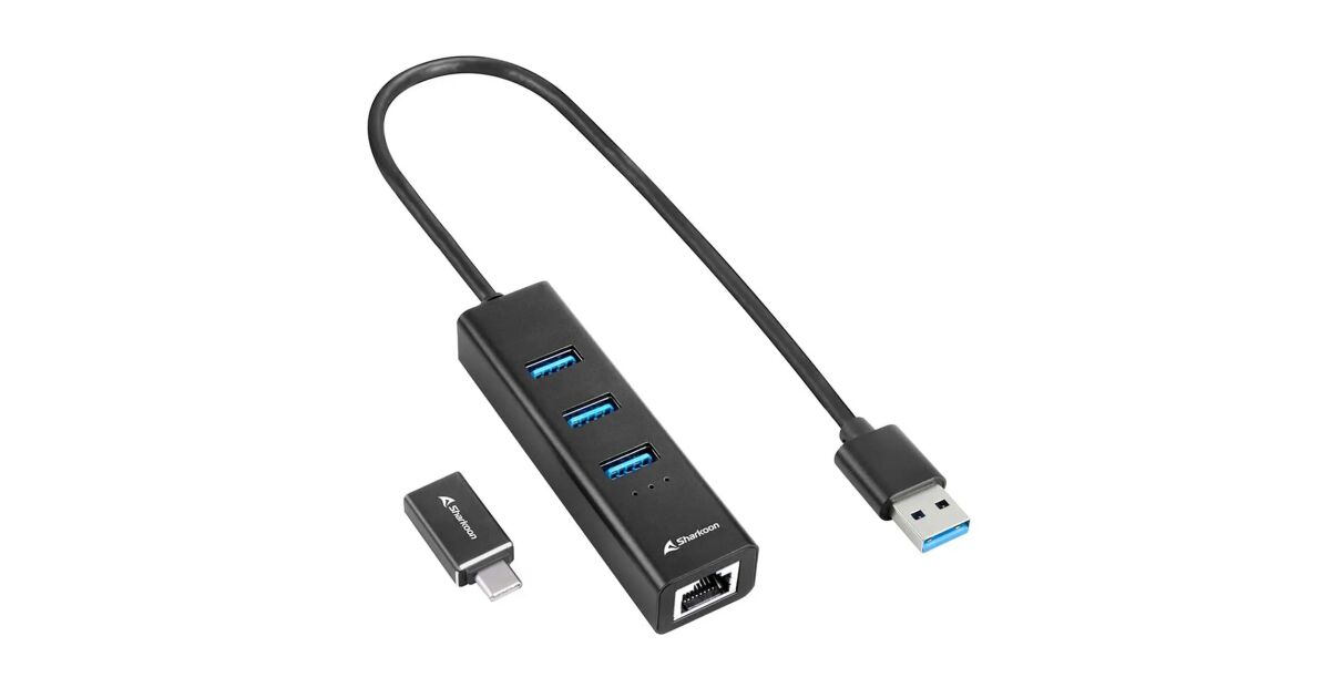 Hub USB 3.2 și Adaptor Gigabit Ethernet Sharkoon: Conectivitate perfectă acasă și în deplasare 💻