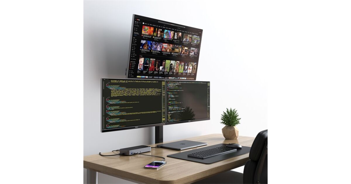 Statie de andocare pentru trei ecrane 4K Satechi - Hub pentru 3 monitoare pentru Mac M1 si M2, gri inchis