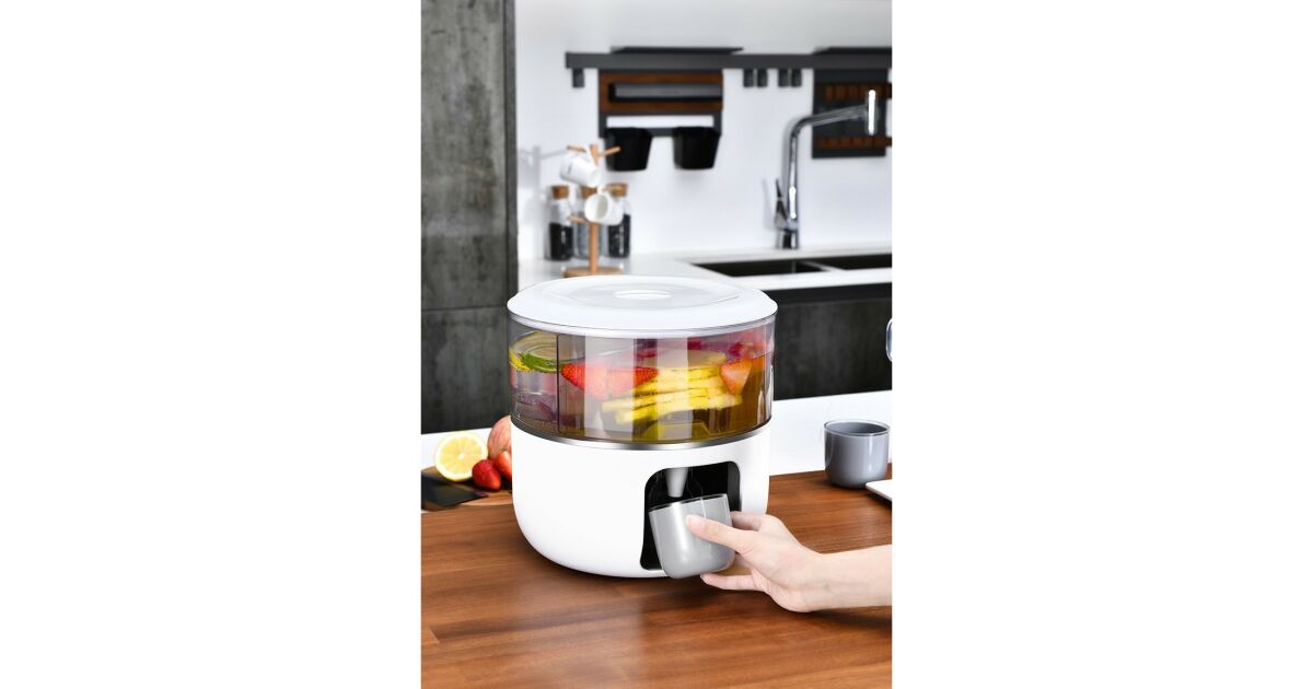 Dispenserul de apă KeepHome este soluția perfectă pentru a vă bucura de apă aromatizată sau de băuturi răcoritoare în orice moment. Cu cele 3 compartimente rotative, puteți prepara cu ușurință diferite combinații de arome și fructe. Capacitatea generoasă de 3 litri asigură suficientă apă pentru întreaga familie sau pentru o petrecere. Designul elegant și compact se integrează perfect în orice bucătărie.
