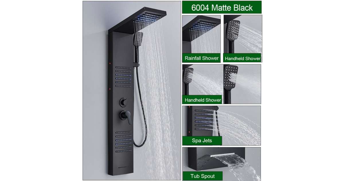 Panel dus, Blackswan, Tip M6004, model negru cu pipa cascada, LED si functii SPA, dimensiune 122 cm opinii