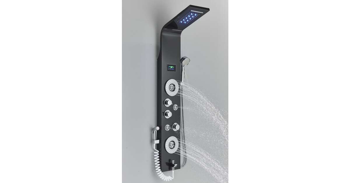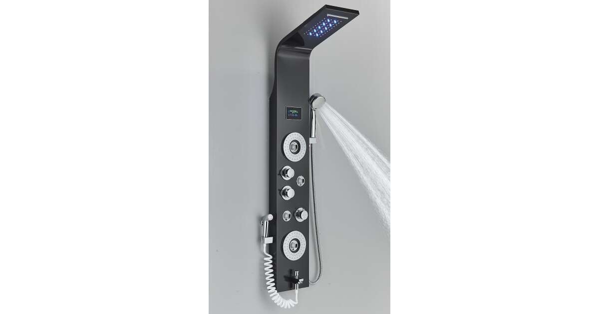 Panel dus, Blackswan, Tip M8006, model negru cu pipa, afisaj digital, LED si functii SPA, dus bideu, dimensiune 128 cm Descriere