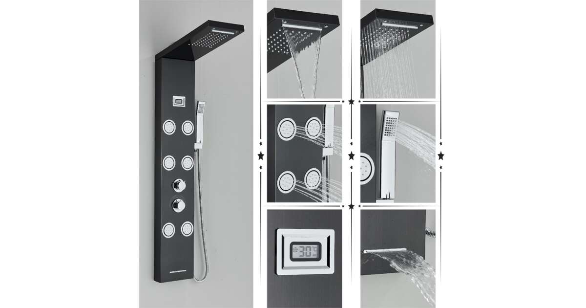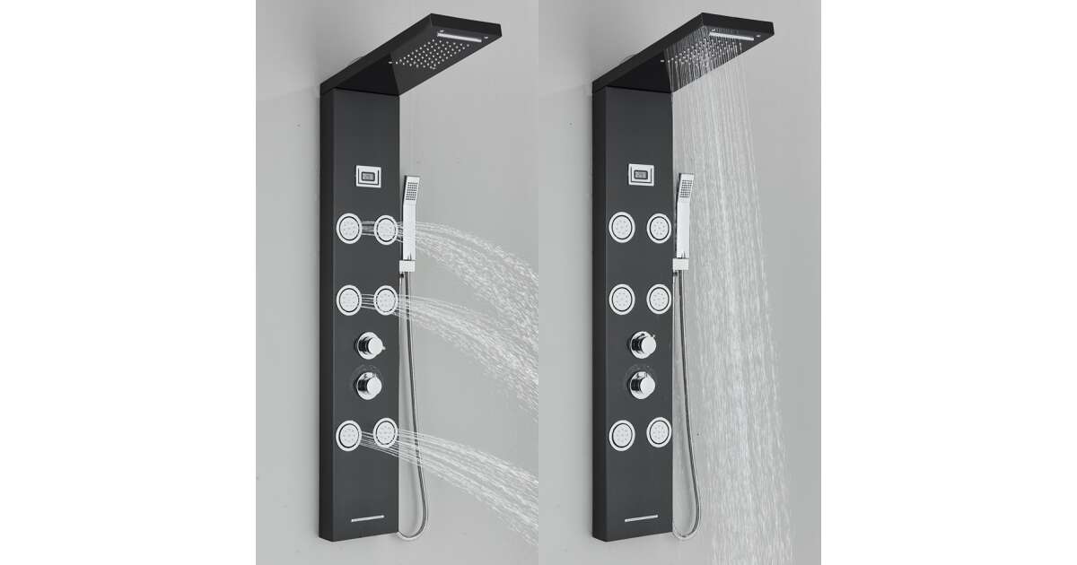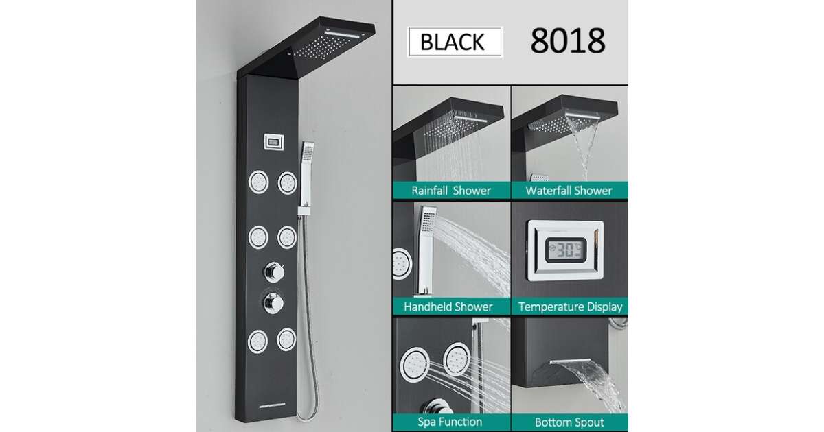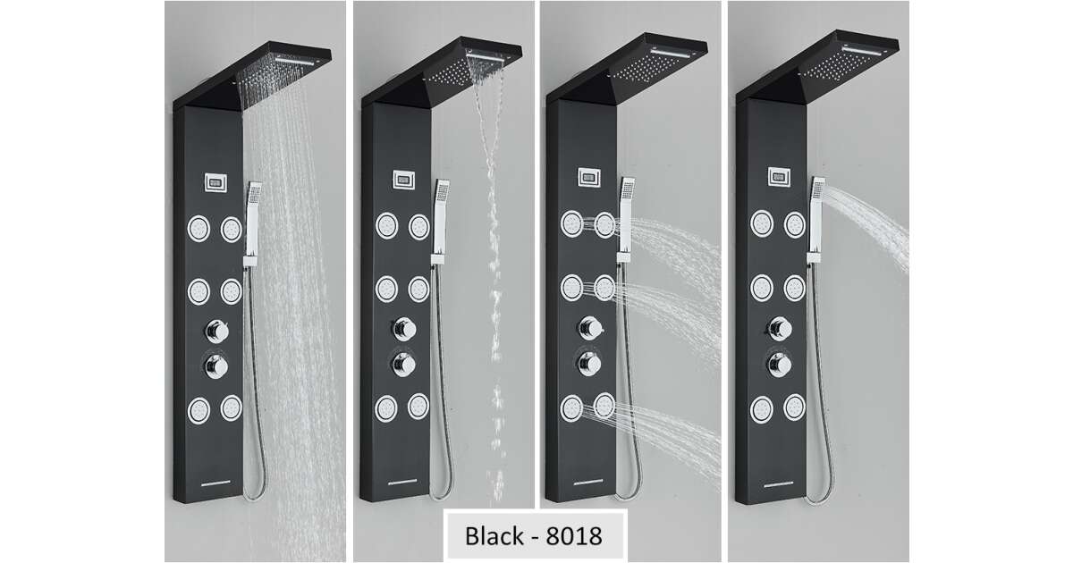 Panou dus, Blackswan, Tip M8018 model negru cu afisaj digital, pipa tip cascada si functii SPA, dimensiune 114 cm Descriere
