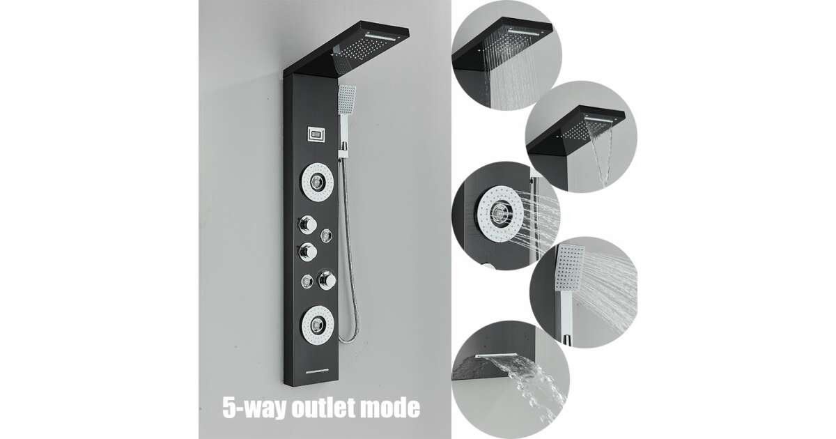 Panou dus, Blackswan, Tip M8019 model negru cu LED, afisaj digital, pipa tip cascada si functii SPA, dimensiune 114 cm Descriere