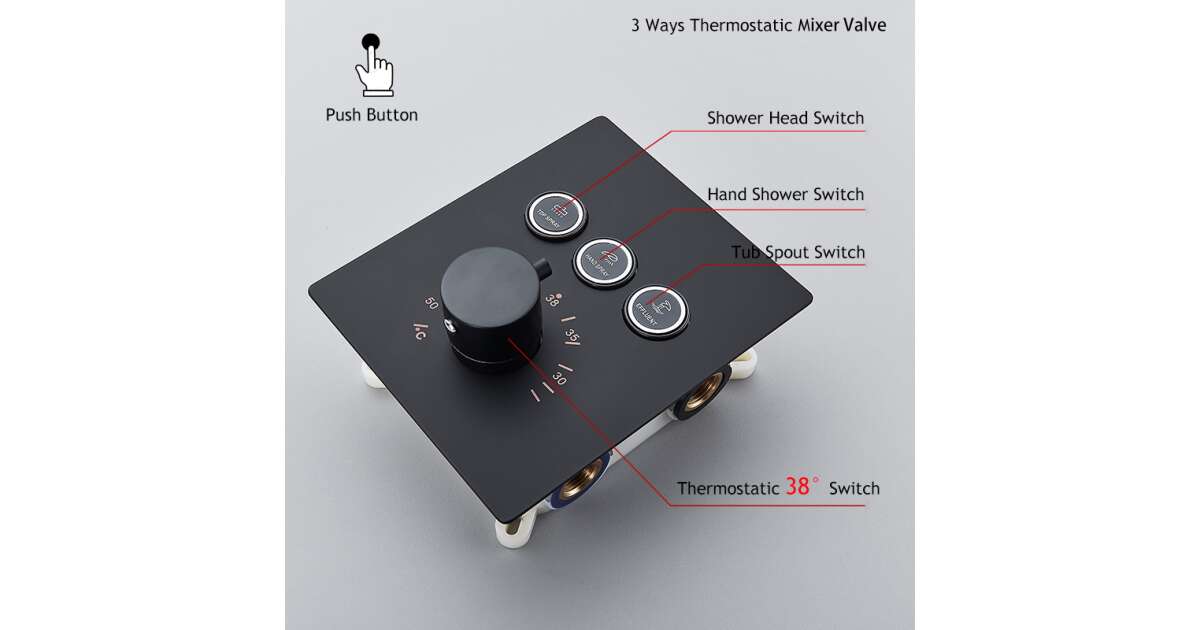 Set baterie dus, Blackswan, Tip M154, model negru mat, cu 3 cai, iluminare LED, termostat si pipa mobila, dimensiune 40 cm opinii
