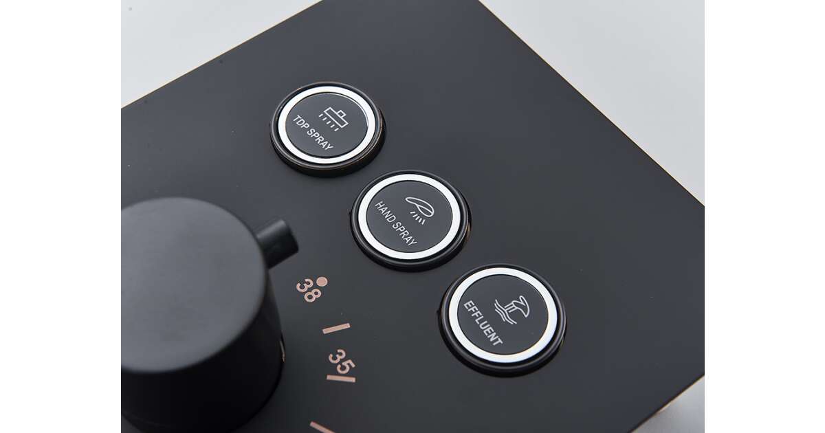 Set baterie dus, Blackswan, Tip M154, model negru mat, cu 3 cai, iluminare LED, termostat si pipa mobila, dimensiune 40 cm Descriere