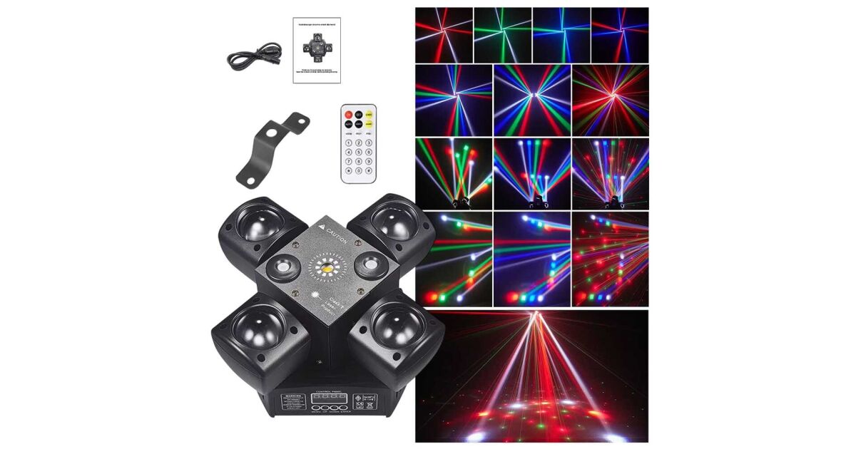 - Cu efect cu 4 brațe și laser cu cap rotativ: Spectacol de lumini dinamic și variat, care nu devine niciodată plictisitor. ✨