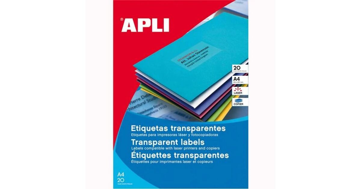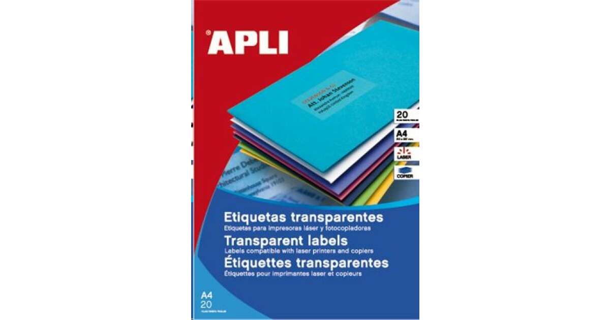 Etichete Autocolante Transparente APLI A4 pentru Imprimantă Laser - 20 buc