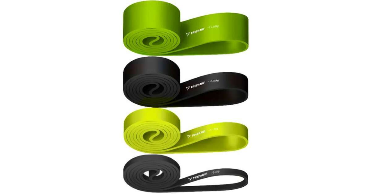 - 4 benzi de fitness de culori și grosimi diferite (gri, verde deschis, negru, verde închis)