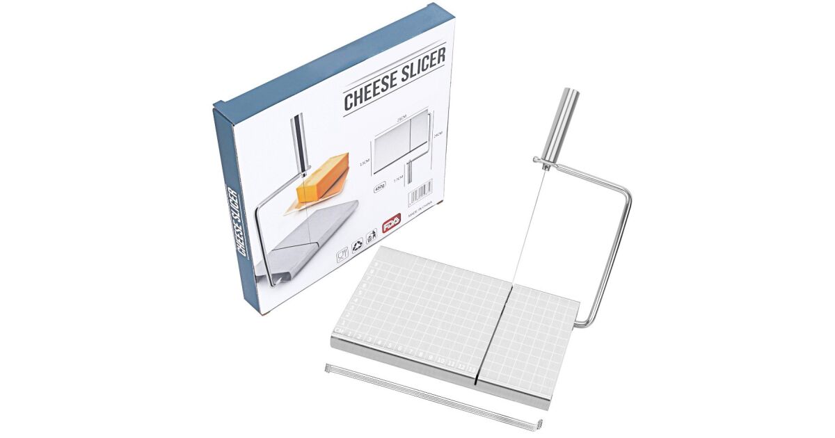 Feliator manual KipHome, pentru cascaval, salam, prajituri, unt, din otel inoxidabil, usor de curatat si utilizat, 5 lame de schimb incluse, picioare antiderapante, 21 x 12.2 x 2.8 cm, argint Descriere