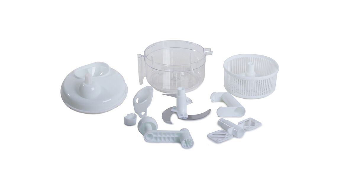 - Multifuncțional: Tocare, feliere, batere, amestecare aluat, uscare salată, zdrobire gheață, separare gălbenuș.