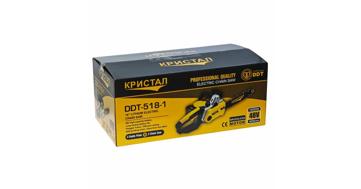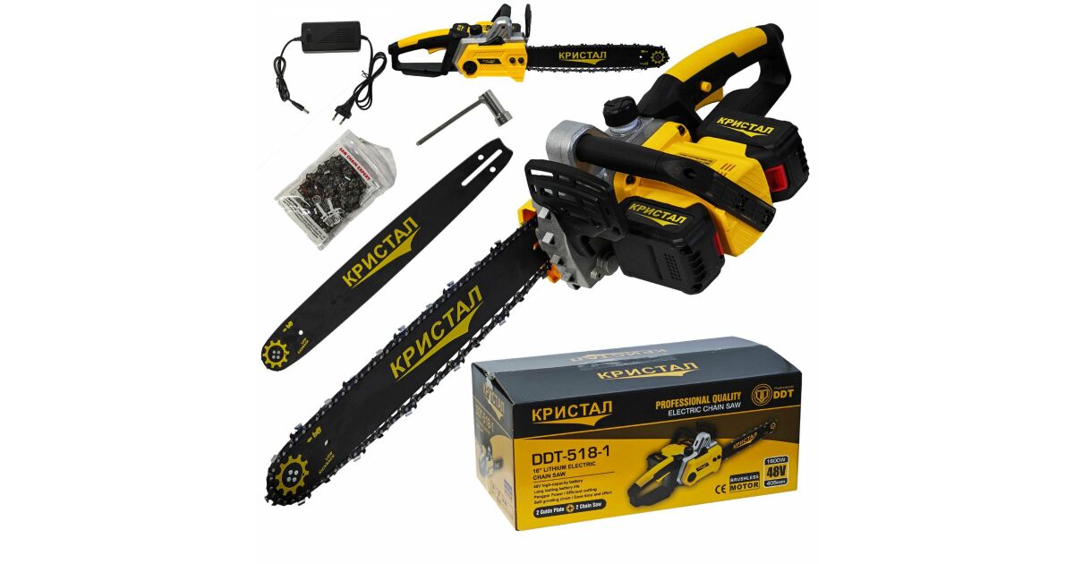 Drujba ,mini fierastrau cu 2 acumulator DDT-CRISTAL, 48V,1600W,4800rot/min,5A,Brushless, Motor fără perii, Lungimea lamei de 405mm, 2 lame,2 lanturi,Ideala pentru taierea lemnelor de foc Descriere